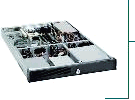 The unit is encased in a black, 1U rackmount-type chassis which is 17 inches wide (19 inches to the outside of the rack-mount ears), 23 inches deep, and 1.75 inches tall. Airflow is from front to back, with three internal 10 CFM fans pulling filtered air into the case from the front, and two fans (one built into the power supply) blowing air out of the case at the back. A full-width door at the front of the unit swings downward (or can be removed) to expose the reset and power switches and to give access to the floppy and CDROM drives. Power and hard-disk-activity LEDs on the front panel are visible either with the door open or closed. The power and reset switches, the floppy drive, and the CDROM drive are accessible only when the door is opened. Connectors for a VGA monitor, a keyboard, a serial console, and two 10BaseT/100BaseTX Ethernet cables are available at the back of the chassis. The WAN connectors or additional Ethernet connectors are also at the back of the chassis. |