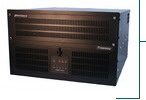 The unit is encased in a black, 6U rackmount-type chassis which is 17 inches wide (19 inches to the outside of the rack-mount ears), 18 inches deep, and 10.5 inches tall. Airflow is from front to back, with three internal 50 CFM fans pulling filtered air into the case from the front, and up to eight power supply fans blowing air out of the case at the back. A full-width door at the front of the unit swings downward (or can be removed) to expose the reset and power switches and to give access to the DVD/CDROM drive. Power and hard-disk-activity LEDs on the front panel are visible either with the door open or closed. The power and reset switches and the DVD/CDROM drive are accessible only when the door is opened. Connectors for a VGA monitor, a keyboard, a serial console, and two 10BaseT/100BaseTX Ethernet cables are available at the back of the chassis. The WAN connectors or additional Ethernet connectors are also at the back of the chassis. Refer to the Freeway 3612 Installation Guide for further information. |